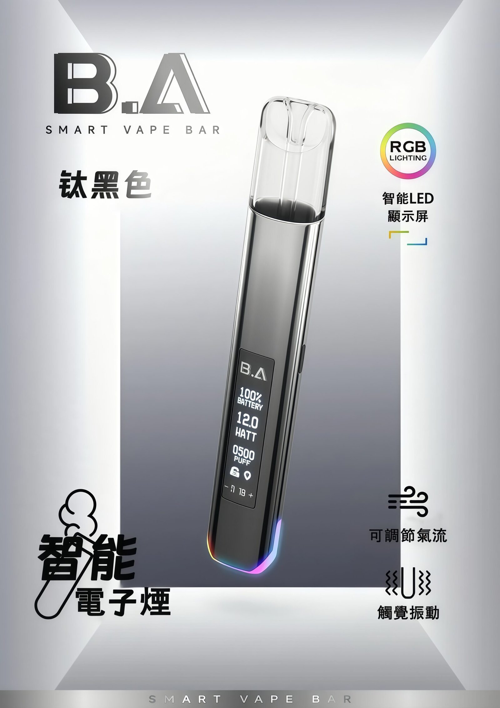 BA 一代主機不僅提供了穩定可靠的吸食性能,更以其卓越的高質感設計,讓電子煙成為您日常生活中的時尚點綴。選擇 BA,將品味與通用性完美結合!