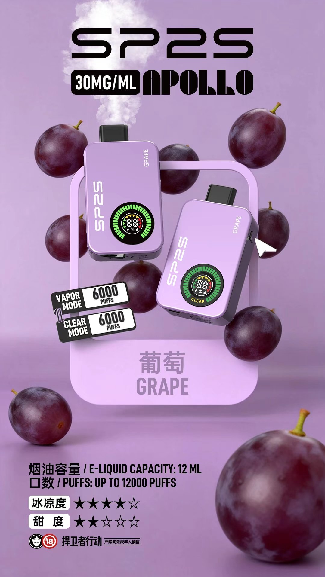 SP2S PRO 雙模式拋棄式套裝 · 各模式6000口核彈級續航